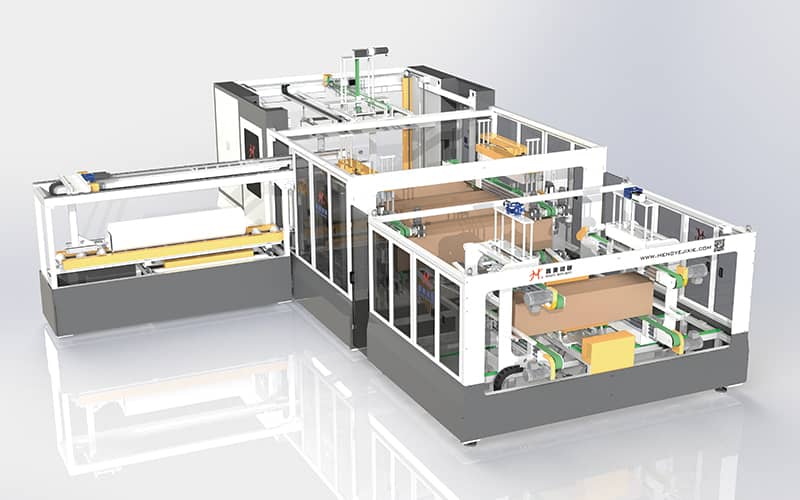 用途: 用于床墊等物料的的紙箱包裝,實現(xiàn)了自動開箱,裝箱,封箱一體化。